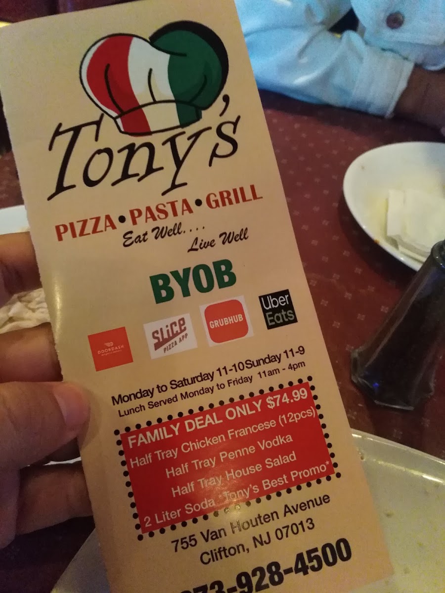 TONY’S best pizza Vodka sauce , pesto , marinara Melted mozzarella cheese